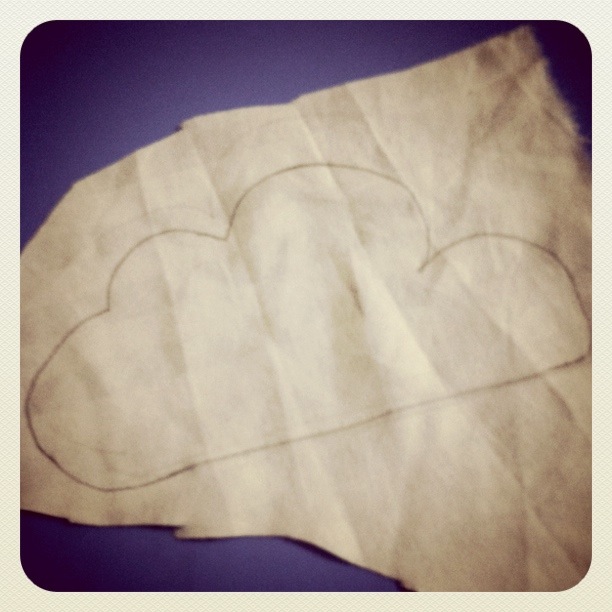 I drew a cloud on the wrong side of the white fabric (I used the same fabric that I would be putting the clouds on)