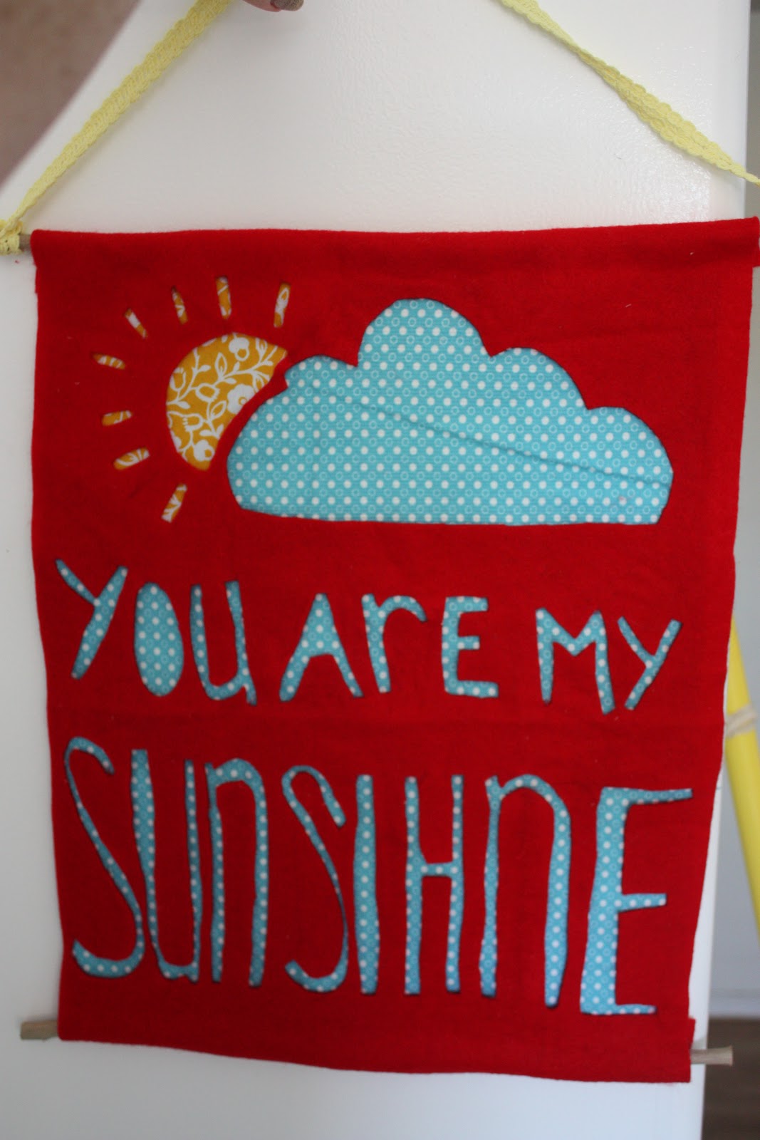 Etsy artist, she would most likely have a favorites page where I could browse her favorite handmade things. There I found a lot of items featuring clouds and the colors red and aqua. This quilt is what I came up with. I was able to finish it on Friday. Then Saturday (the morning of the shower) I decided I really wanted to make something to go with it. So I made this wall hanging.